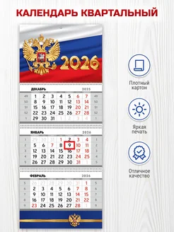 Настенный календарь 2026 год трехблочный с символикой РФ