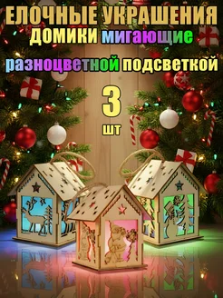 Деревянные елочные игрушки Набор домики с подсветкой 3 шт