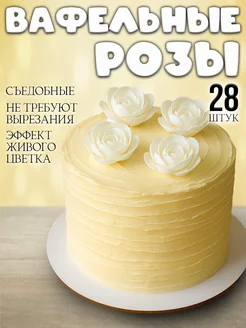 Вафельные цветы розы объемные, съедобные, на торт 28 штук