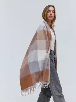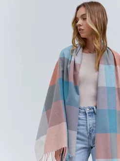 Шарф палантин кашемировый теплый в клетку