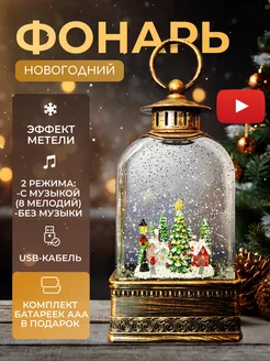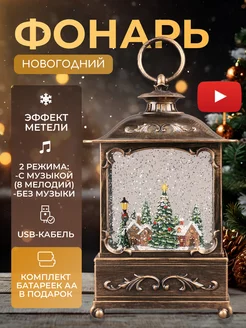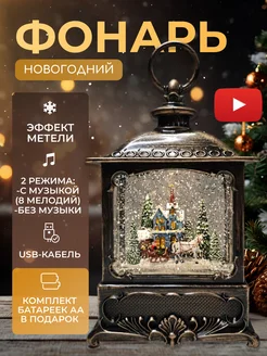 Новогодний фонарь светильник музыкальный со снегом