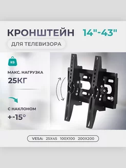 Кронштейн для телевизора 14"-43" 25кг. с наклоном
