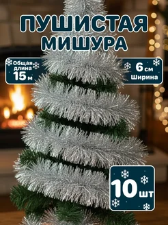 Мишура новогодняя серебристая на елку, пушистая и толстая