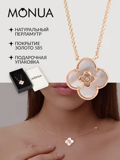 Цепочка клевер с подвеской белый перламутр в коробочке