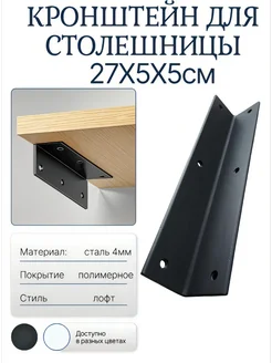 Кронштейн для столешницы 27х5х5см Держатель настенный черный