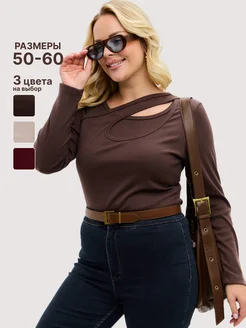 Лонгслив кофта облегающий нарядный в рубчик больших размеров
