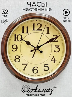 Часы настенные интерьерные круглые бесшумные для кухни 32 см