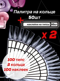 Палитра на кольце короткий стилет (типсы веер) с наклейками