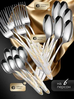 Столовые приборы с золотым напылением 18 штук на 6 персон
