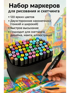 Набор скетчинга маркеров двухсторонних. 120 цветов