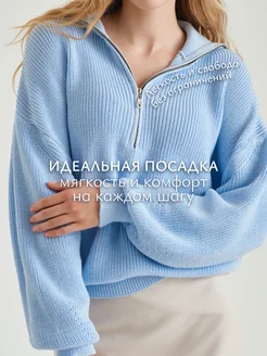 Свитер оверсайз с горлом на молнии вязаный теплый old money