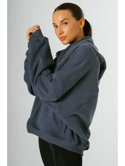 Зип худи оверсайз на молнии с капюшоном и микроначесом