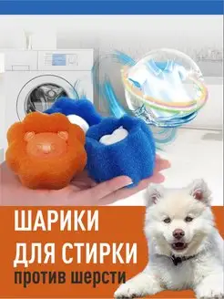 Шарики для стирки против шерсти и волос синие 3 штуки