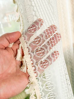Штора кружевная винтаж с бахромой тюль молочный - 150x220