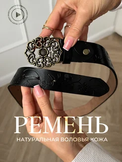 Широкий ремень натуральная кожа с тиснением и заклепками
