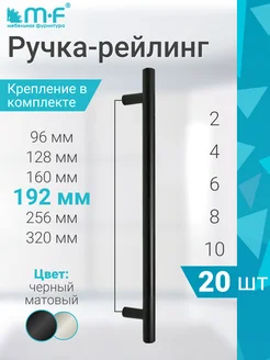 Ручка-рейлинг облегченная 192 мм, черный матовый - 20 шт