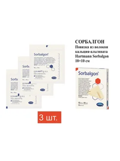 Повязка из волокон кальция-альгината Сорбалгон 10х10 см 3 шт