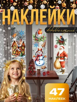 Новогодние украшения для дома набор наклеек на окна 47 шт