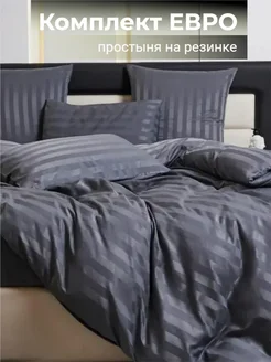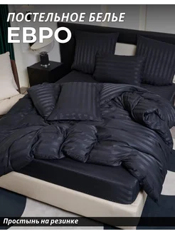 Постельное белье Сатин Бархат Евро простынь на резинке