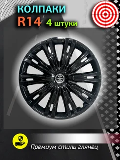 Колпаки R14 Гига чёрный глянец 4 штуки