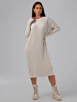 Вязаное платье лапша с длинным рукавом