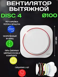 Вытяжной вентилятор 100 для ванной кухни и туалета DISC 4