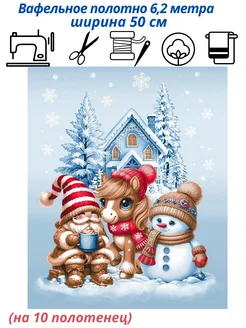 Ткань вафельная для полотенец новогодняя