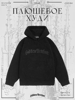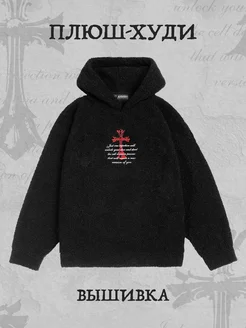 Плюшевое черное худи из барашка оверсайз y2k