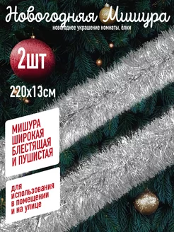 Мишура новогодняя серебристая, пушистая Набор 2 штуки