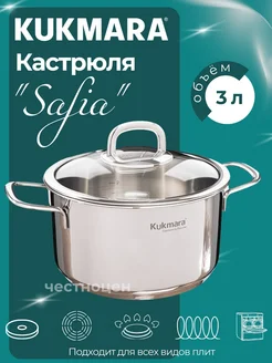 Кастрюля нержавеющая "Safia" 3,0л со стеклянной крышкой