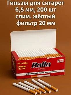 Гильзы для сигарет 6.5 мм, 200 шт, слим,желтый фильтр 20 мм