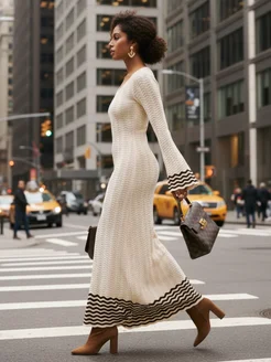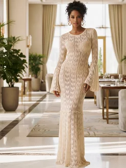 Вязаное платье с длинным рукавом кроше