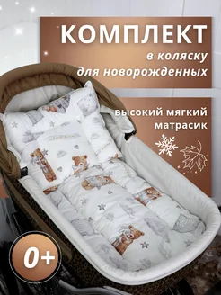 Комплект в коляску для новорожденных матрасик с подушечкой