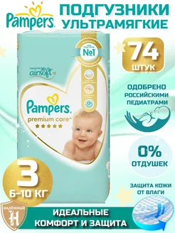 Подгузники для новорожденных Premium Care 3, 74 шт