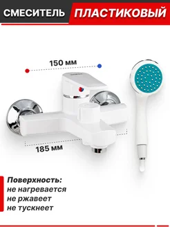 Смеситель в ванную белый короткий излив из АБС пластика 557