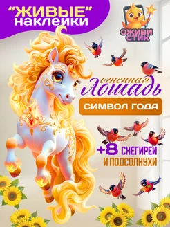 Наклейка новогодняя лошадь большая на стену кухни 2026