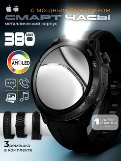 Смарт часы мужские для андроид и iphone с фонариком
