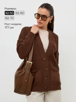 Кардиган удлиненный с карманами больших размеров оверсайз