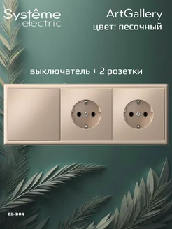 Блок две розетки выключатель 1кл встраиваемый песочный Art