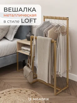 Вешалка стойка для одежды напольная, металлическая золотая