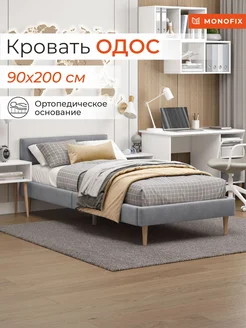 Кровать ОДОС 90х200, велюр светло-серый №52