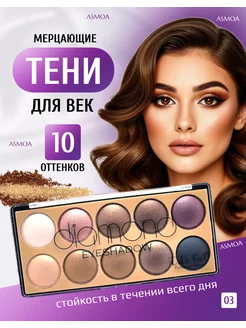 Палетка теней для век с шиммером 10 нюдовых оттенков