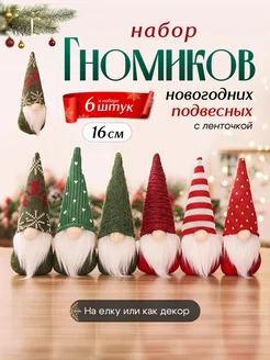 Гном новогодний на елку камин набор 6 штук