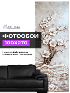 обои 3д для зала метровые барельеф белые цветы 100х270 см