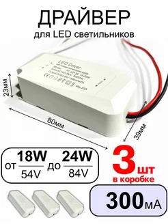Драйвер для светодиодного светильника 18-24Вт 300мА 3шт