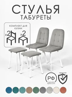 Кухонные мягкие стулья 2 шт. и табуреты 2 шт. черный каркас