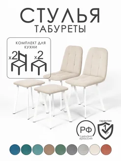 Комплект стулья 2 шт и табуреты 2 шт велюр белые ножки