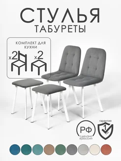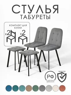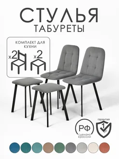 Комплект стулья 2 шт и табуреты 2 шт велюр чёрные ножки