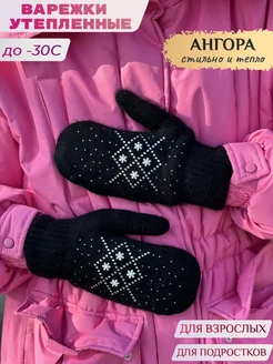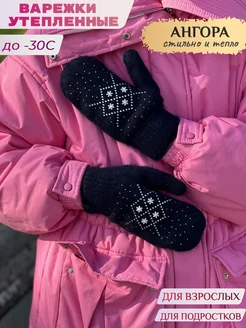 Варежки ангоровые зимние теплые со снежинками и стразами