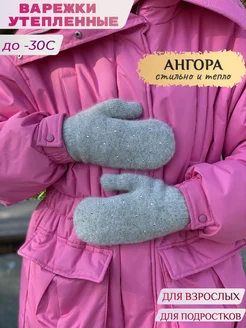 Варежки пуховые мягкие шерстяные из ангоры с кристаллами